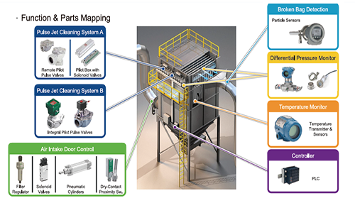ASCO除塵系統(tǒng):ASCO產(chǎn)品在除塵系統(tǒng)中的組成:脈沖設(shè)備電磁閥,先導(dǎo)閥,調(diào)壓器,氣缸,有序控制器等。